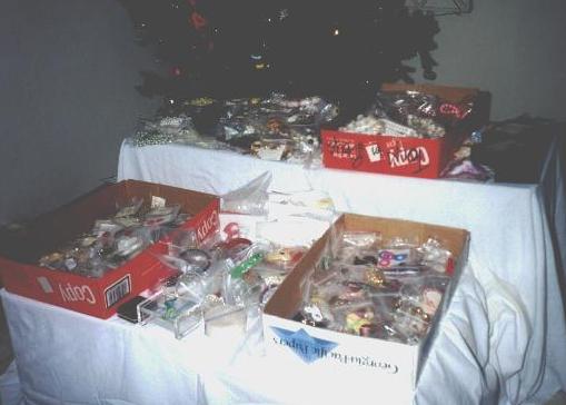 Under the artificial Christmas Tree is found the sorted jewelry, just waiting to go home with a happy mom. Jewelry is donated by Mission of Mercy, Brother dePaul, Minneapolis, Minnesota. Their volunteers go through and carefully sort and wrap each piece or set to be sure nothing is wrong.