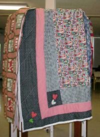 Elizabeth Crescent spends the entire year making quilts and other items for the auction from donated materials. She has arthritis so can only work a few hours at a time, but her friends know how much it means to her to be able to help, so they make sure she has the supplies. |