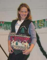 In addition to quilts, this year Elizabeth sent along hand made quilted vests, one the Christmas vest shown; she also made a clown that was very popular at the auction. |