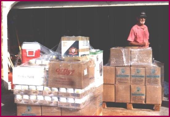 Boxes of food packets and cases of formula. Getting this 3,000# load of cargo with food, formula and medical supplies ready to go to Haiti is definitely what Don DeHart considers a successful trip back to Florida.