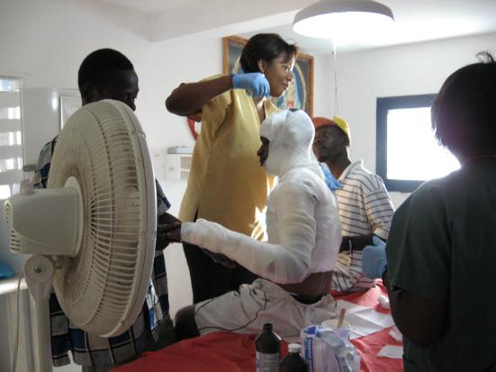 Up to Pilgrim House 18 to see the damage to the outhouse which caved in from the storm. Went to Labadie Beach, was closed from storm debris; went to Beli beach. Rob and Presume swam. Meet a couple from Georgia, she had been born in Haiti; went over to Labadie village with them walked around and took a little boat back to our truck at Beli Beach. We gave our new friends a ride to town. On the way to town the truck broke down. Presume and I got out searching for a cell phone signal while Rob is trying everything to fix it. He ended up fixing it with a fork and spoon from the glove box.. School was supposed to start but could not because of all the hurricane damages. October-School in Haiti started 6th of October. We started the tile projectfor the headquarters. The original tiles were very dangerous breaking and rocking. Removed the old tile, cleaned floors before putting down the new. We tiled the three bedrooms, the hallway, kitchen and the big room. Together it was 228 square meters of tiles. November-Tile 275 square meters of tile. This time for the upstairs, stairway, clinic, pharmacy and waiting area. I wasn’t there when the tile was bought. I took the check in to pay for it. Abraham trusts us now to pay our bills on time. Received 200 boxes of food packets that were left behind in Port au Prince. Bought bulgur wheat for the food program instead of rice. Two schools in Haiti collapsed because of poor construction killing many. In Florida, wrapping up the last things for the Christmas party in Haiti because I will not be back in December. December-Received food from Kids Against Hunger – 396 boxes. New food cards were made to give to a new group of people to start the 4th of December. Suppose to have 10 boxes from Casco to come before Christmas. They still have not come (in January). ![]()