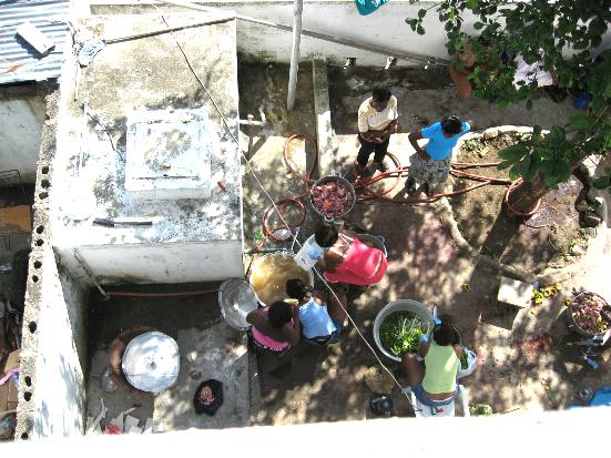 Christmas TripThough it had been raining for days and there were mud puddles everywhere—we only had about five minutes on Christmas morning, it cleared off and turned into a perfect day for the party. But I am getting ahead of myself here. I got in on December 23 and the headquarters was beautifully decorated with lights for all to enjoy. Though we only have a few—in Haiti where power is rare and public utilities non-existent, they do stand out like the more spectacular decorations here. The day before the party is preparation day and this year it was a little different. With the problems of importing from the D.R. we couldn’t get the big frozen chicken pieces we have used in the past. They had located a calf that was actually cheaper than the chicken would have been so… the day before Christmas they actually killed the fatted calf, cleaned it, cut it up and started cooking it. ![]()