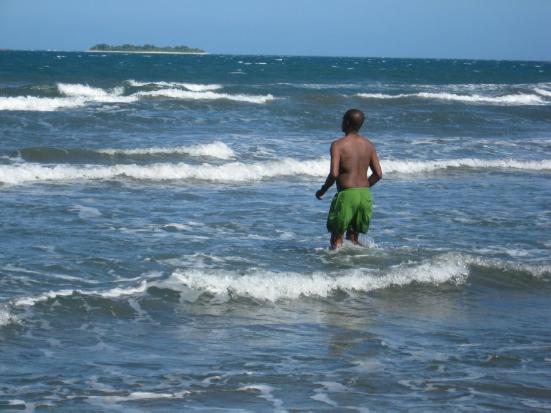 This was my first Christmas there since Don’s passing so it is yet another of those “widow firsts” that has been experienced and put aside. I only got teary once when Lucy (a neighbor from the hotel apartments) came by and started talking about Don and how he loved the giving to all the children at Christmas—we shared a cry and then went back to the celebration of Messiah’s birth by feeding the hungry and providing gifts. Cleanup from the party is so fast as all the staff and even the security pitched in to help repack the items not distributed and clean up the papers and empty plates around—no food wasted. The welder had the truck back up and running by Christmas night. Friday was a day to re-group, discuss the happenings and what could be improved and to check on CASCO to see if our other shipments had arrived. I had asked to revisit one of the marketplaces Don had built so we took the road trip to Bas Limbe. After seeing how Perches market had grown and the improvements they had made, it was disappointing to see that nothing had been done to maintain Bas Limbe … the rusting sheet metal roofs with pieces missing allowing the weather to take its toll on the wooden trusses. Obviously the political structure left in place to keep it repaired had failed with changing people. After purchasing a bag of lima beans from a vendor off we went. Since we were close we also checked out the market at Limbe which hadn’t been maintained any better, so we didn’t even get out of the vehicle there. Had Don ever shown me the M&M Beach? No—so we took a left fork in the road and headed out to the sea shore. It is a beautiful area, not developed because of the black sand and subsequent black water… lava rock. But an area surrounded by mountains and an area with lots of beautiful waves… a couple of men gathered coconuts and we drank coconut milk and ate fresh coconut and then another treat while there was when the driver disappeared and came back with plates of freshly fried Creole spiced fish and fried plantain—yummy!!! ![]()