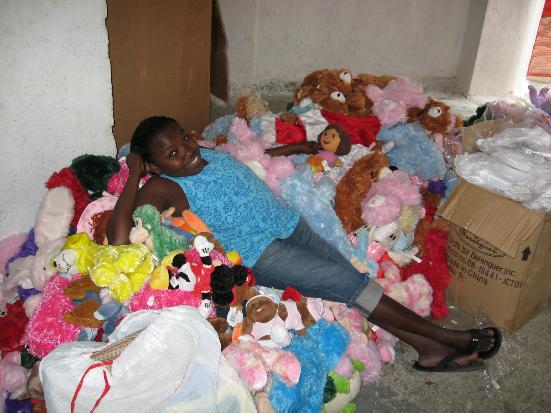 Shortly after noon it got quiet as the food was being distributed. There were a couple of fights broke out until the announcement was made that the next ones to fight would be taken outside by the security and not allowed to eat … there were no more fights. Eating beef is a rare treat in Haiti so they were amazed and very pleased when they got the plates of food. After the meal Mr. and Mrs. Santa began distributing the new gifts to eager children with wide eyes. There were so many toys, dolls, teddy bear brides, soccer balls, perfumes, colognes, jewelry… lots of things for everyone. ![]()