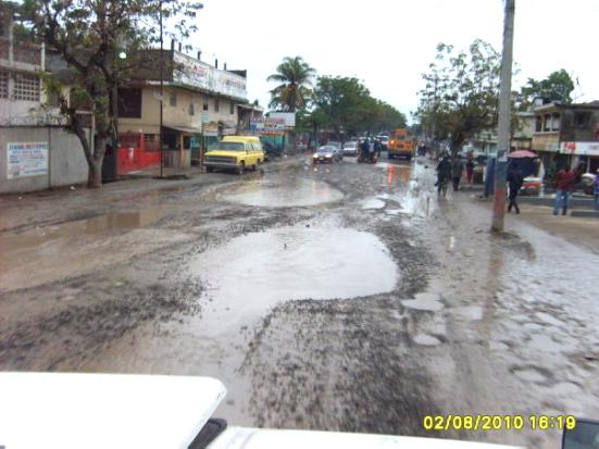 This is an example of the “roads’ Randy mentioned. Actually this is one of the better streets, it takes you from Cap downtown to the Airport… you quite literally drive into potholes in Haiti and most of the time need 4-wheel drive to get back out and hopefully have diesel so you don’t worry about flooding out.