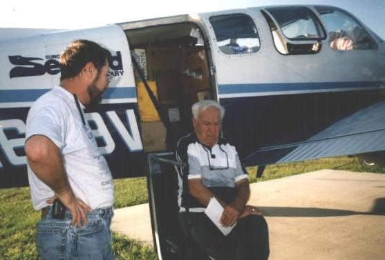 With both planes loaded and ready to go, Jack St. Arnold and Earl Brown take a moment to compare notes and plan the strategy of the trip to Haiti... like where to stop for lunch.