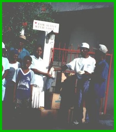 The boxes in front of the gate each contain 36 packets of food, each packet serves 6 nutritionally balanced meals and there are 33 boxes to a pallet, so each pallet going down is 7,128 meals. When we pay for the pallet of food and all cargo to get it to Haiti we can still put a meal on the table in Haiti for about 35¢.